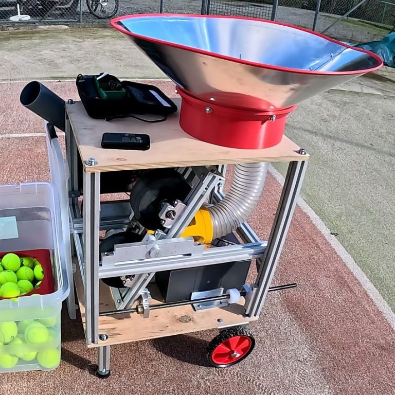 Um das Training besser gestalten zu können und die Technik durch Wiederholung besser einzuprägen, kam schnell der Bedarf von einer Ballmaschine auf. Leider sind die Geräte sehr teuer und ich hatte noch einiges an Material verfügbar und konnte auch viele Teile mithilfe eines 3D Druckers herstellen.